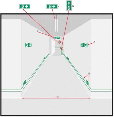- Приложение А (рекомендуемое) Примеры размещения фотолюминесцентной эвакуационной системы