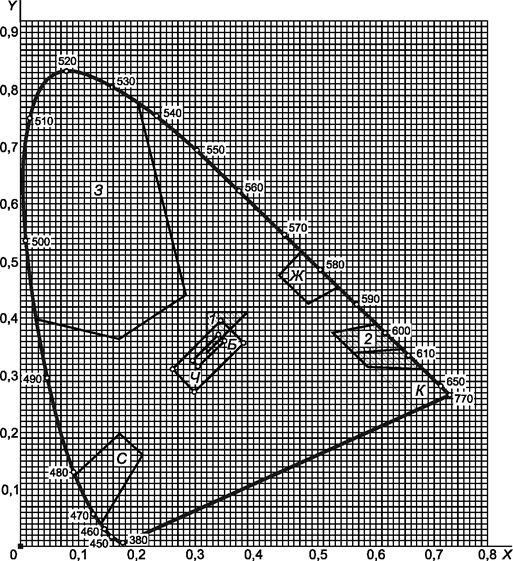 координат цветности | Dх = Dу = 0,01. |
