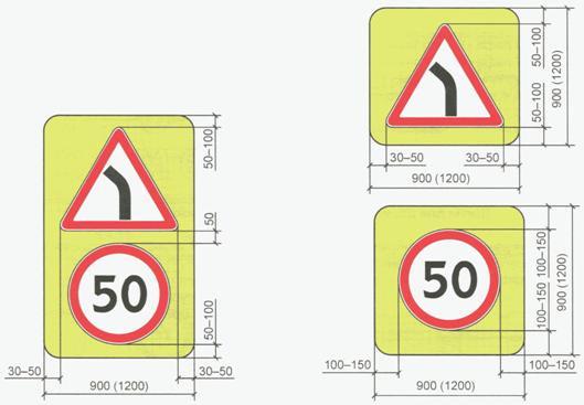 Рисунок Ж.1. Примеры размещения изображений дорожных знаков типоразмеров II и III на щите: